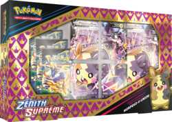 La Collection Premium avec tapis de jeu Zénith Suprême Morpeko-V-UNION est un coffret du Jeu de Cartes à Collectionner accompagnant l'extension Zénith Suprême et mettant en avant Morpeko.