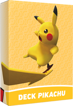 Le deck à thème Deck Pikachu fait partie des decks à thème fournis dans l'Académie de Combat. Il y est destiné au joueur n°2. Les cartes sont numérotées afin d'organiser le deck pour une partie scriptée.