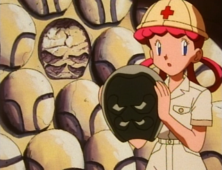L'infirmière Joëlle tenant un fossile de Kabuto dans l'épisode 89.