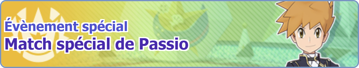 [modifier]Image de la bannière de l'Évènement spécial : Match spécial de Passio de Blue (Néo-Maître) dans Pokémon Masters EX.