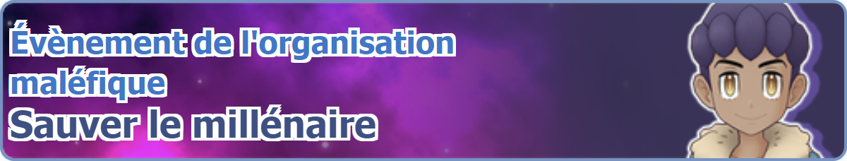 [modifier]Image de la bannière de l'Évènement de l'organisation maléfique : Sauver le millénaire dans Pokémon Masters EX.