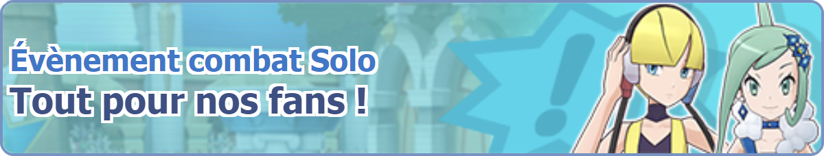 [modifier]Image de la bannière de l'Évènement combat Solo : Tout pour nos fans ! dans Pokémon Masters EX.