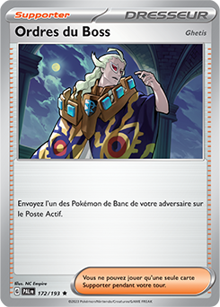 [modifier]Scan de la carte Ordres du Boss de l'extension Écarlate et Violet Évolutions à Paldea.