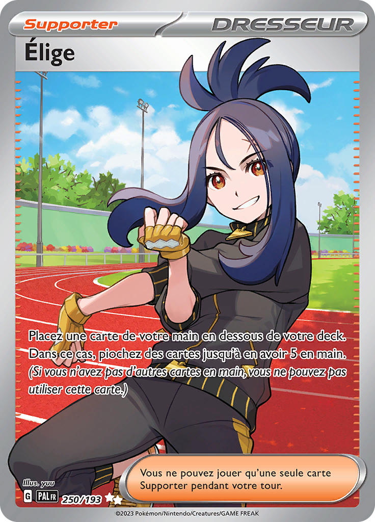 [modifier]Scan de la carte Élige de l'extension Écarlate et Violet Évolutions à Paldea.