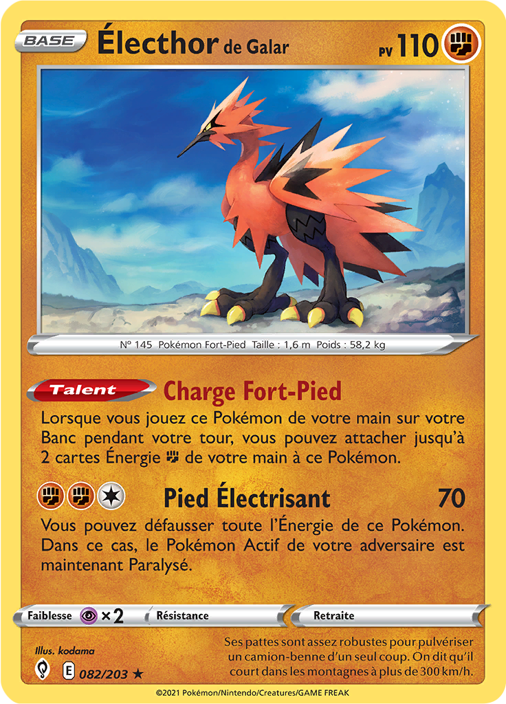 [modifier]Scan de la carte Électhor de Galar de l'extension Épée et Bouclier Évolution Céleste.
