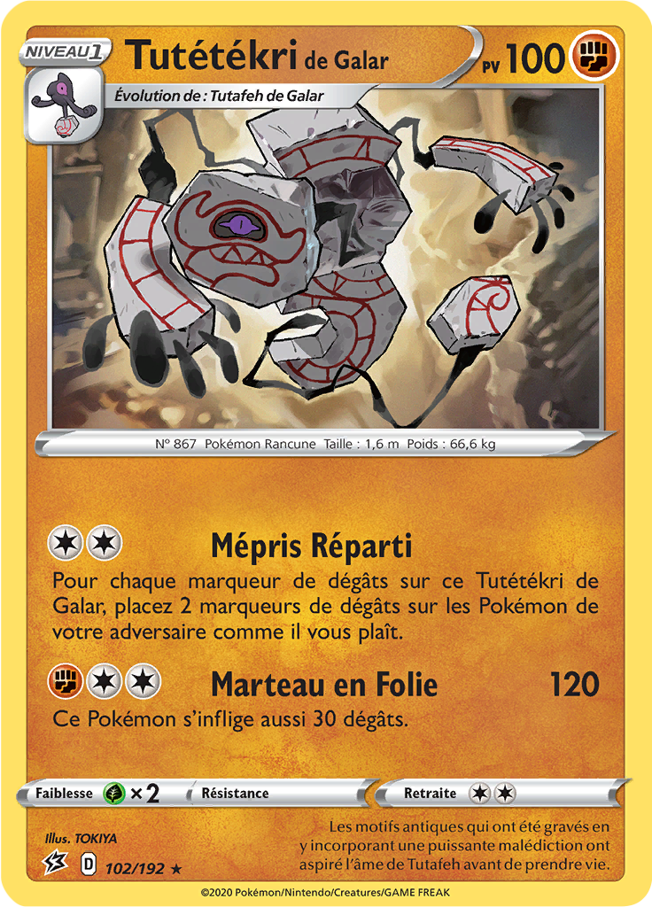 [modifier]Scan de la carte Tutétékri de Galar de l'extension Épée et Bouclier Clash des Rebelles.