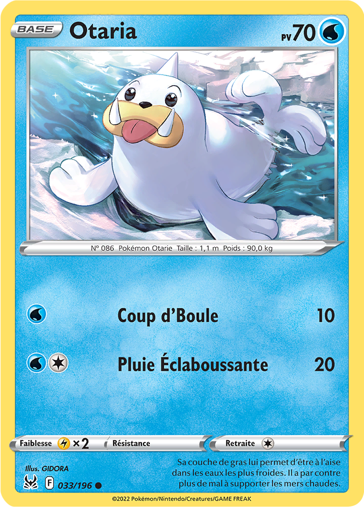 [modifier]Scan de la carte Otaria de l'extension Épée et Bouclier Origine Perdue.