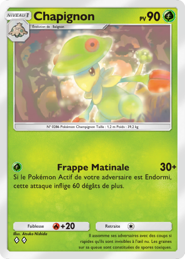 actuel28 avril 2026 à 18:00Vignette pour la version du 28 avril 2026 à 18:00367 × 512 (246 kio)Silvallié (discussion | contributions)Scan de la carte Chapignon de l'extension Aura Palpitante. {{Informations Fichier | source=[https://drive.google.com/drive/folders/1_2YURmd7dYnCX3VuDLQobLNSJbAeavpt Google Drive TCGPocket] | auteur=DeNA }} Catégorie:Scan de carte d'Aura Palpitante Catégorie:Scan de carte représentant Chapignon