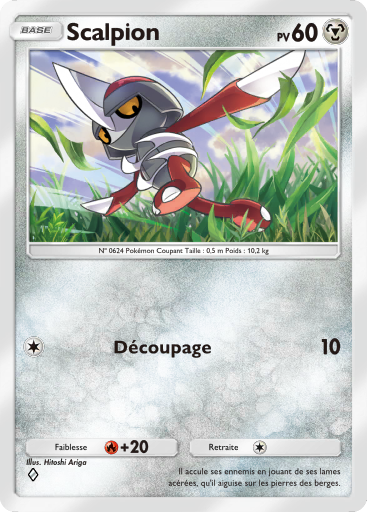 | actuel | 28 avril 2026 à 18:05 | 367 × 512 (291 kio) | Silvallié (discussion | contributions) | Scan de la carte Scalpion de l'extension Aura Palpitante. {{Informations Fichier | source=[https://drive.google.com/drive/folders/1_2YURmd7dYnCX3VuDLQobLNSJbAeavpt Google Drive TCGPocket] | auteur=DeNA }} Catégorie:Scan de carte d'Aura Palpitante Catégorie:Scan de carte représentant Scalpion |