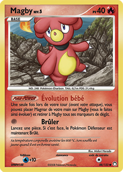 [modifier]Scan de la carte Magby de Diamant & Perle Trésors Mystérieux.