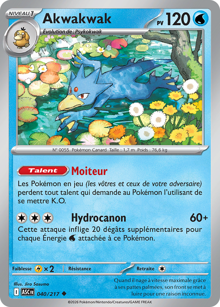 [modifier]Scan de la carte Akwakwak de l'extension Méga-Évolution Héros Transcendants.