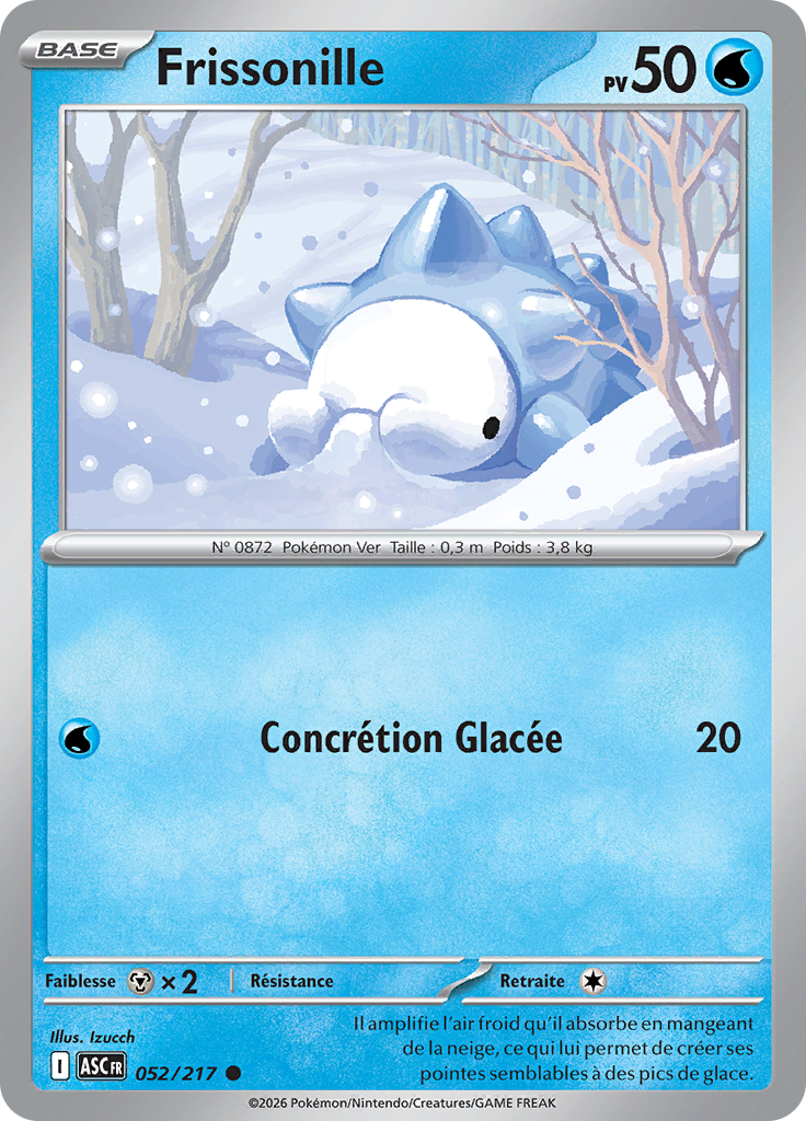 actuel31 janvier 2026 à 10:16Vignette pour la version du 31 janvier 2026 à 10:16736 × 1 024 (574 kio)Silvallié (discussion | contributions)Scan de la carte Frissonille de l'extension Méga-Évolution Héros Transcendants. {{Informations Fichier | source=[https://limitlesstcg.com/cards/fr Limitless] | auteur=The Pokémon Company }} Catégorie:Scan de carte de Méga-Évolution Héros Transcendants Catégorie:Scan de carte représentant Frissonille