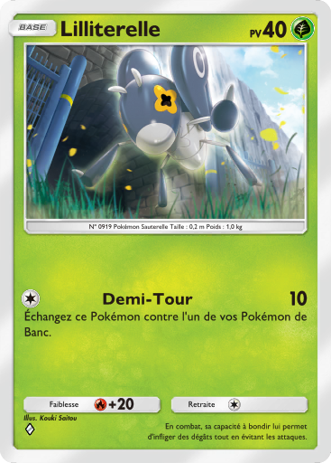 | actuel | 26 février 2026 à 08:57 | 367 × 512 (255 kio) | Silvallié (discussion | contributions) | Scan de la carte Lilliterelle de l'extension Merveilles de Paldea. {{Informations Fichier | source=[https://drive.google.com/drive/folders/1_2YURmd7dYnCX3VuDLQobLNSJbAeavpt Google Drive TCGPocket] | auteur=DeNA }} Catégorie:Scan de carte de Merveilles de Paldea Catégorie:Scan de carte représentant Lilliterelle |