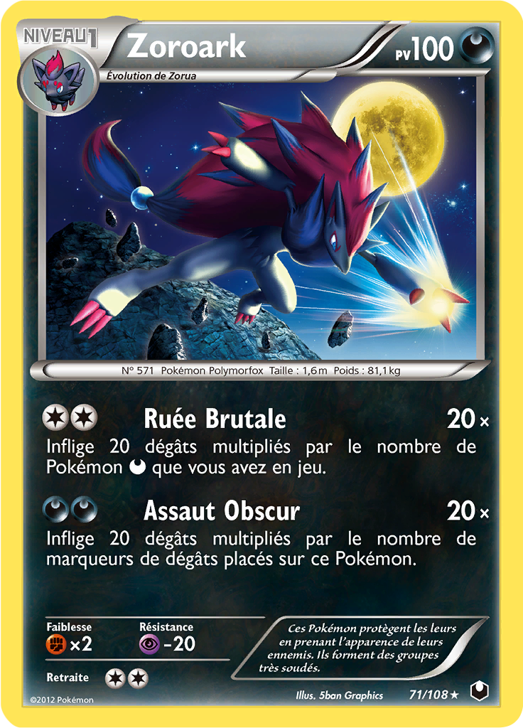[modifier]Scan de la carte Zoroark de l'extension Noir & Blanc Explorateurs Obscurs.