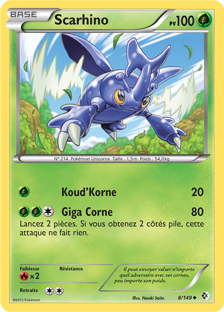 [modifier]Scan de la carte Scarhino de l'extension Noir & Blanc Frontières Franchies.