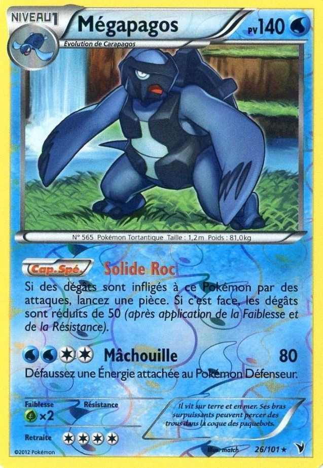 [modifier]Scan de la carte Mégapagos (Noir & Blanc Nobles Victoires 26) de l'extension Noir & Blanc Nobles Victoires.