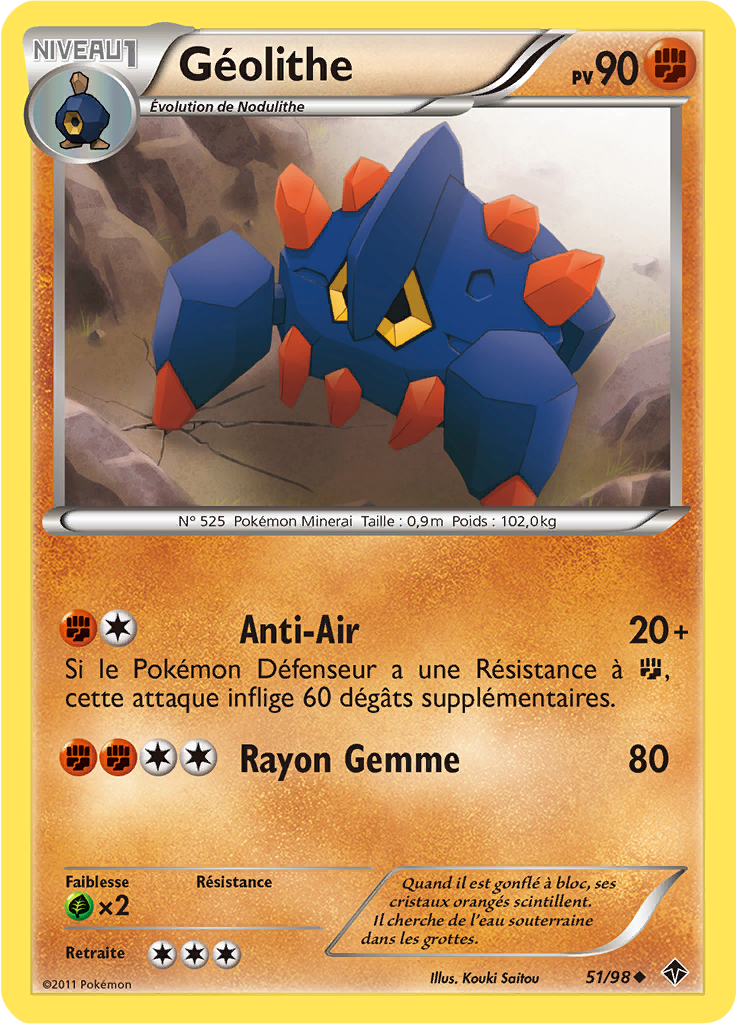 [modifier]Scan de la carte Géolithe (Noir & Blanc Pouvoirs Émergents 51) de l'extension Noir & Blanc Pouvoirs Émergents.