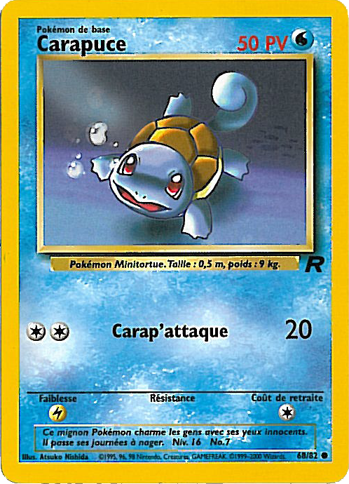 | 22 août 2009 à 23:19 | 498 × 690 (855 kio) | Utilisateur supprimé 210308 (discussion | contributions) | Scan de la carte Carapuce de Team Rocket. Catégorie:Scans des cartes de Team Rocket Catégorie:Scans des cartes représentant Carapuce |
