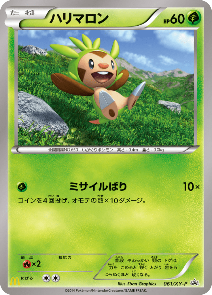 | actuel | 7 juin 2020 à 21:05 | 736 × 1 024 (362 kio) | Vivi950000 (discussion | contributions) | Scan de la carte Chespin (XY-P Promotional 061) de l'extension XY-P Promotional. Catégorie:Scan de carte de XY-P Promotional Catégorie:Scan de carte représentant Marisson |