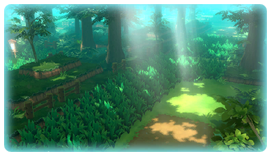 La Forêt de Jade dans Pokémon : Let's Go, Pikachu et Let's Go, Évoli.