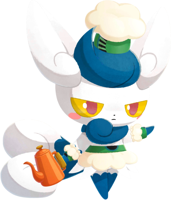 [modifier]Artwork de Mistigrix femelle (Chef Célébration) dans Pokémon Café ReMix.