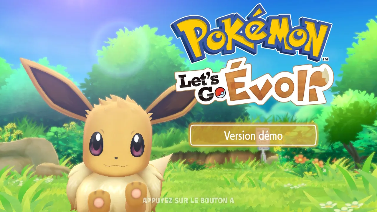 [modifier]Capture d'écran de l'écran titre la Version démo de Pokémon : Let's Go, Évoli.