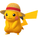 [modifier]Version 1 du sprite de Pikachu mâle chromatique à chapeau de paille dans Pokémon GO.