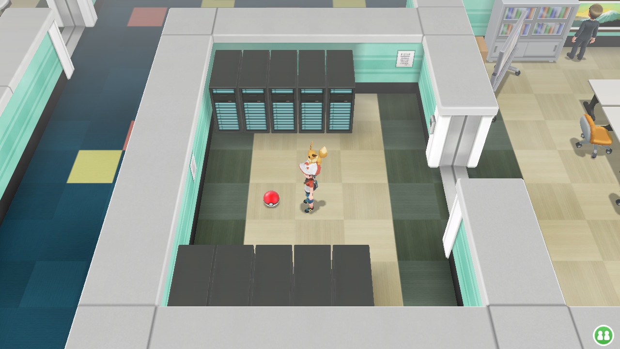 [modifier]Emplacement d'un Garde-Stats dans la Sylphe SARL dans Pokémon : Let's Go, Pikachu et Let's Go, Évoli.