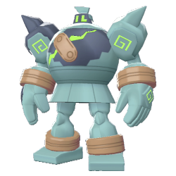 Le Pokémon Golem Ancien. Il est de type Sol et Spectre. Quand on ôte le sceau qui se trouve sur sa poitrine, il perd le contrôle de son énergie.