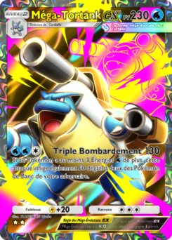 Méga-Tortank-ex est une carte Pokémon-ex Méga-Évolution de l'extension Embrasement Écarlate, à l'effigie du Pokémon Méga-Tortank. Elle doit être posée sur un Carabaffe pour pouvoir être jouée.