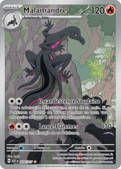 Malamandre est une carte Pokémon de l'extension Méga-Évolution Héros Transcendants, à l'effigie du Pokémon Malamandre. Elle doit être posée sur un Tritox pour pouvoir être jouée.