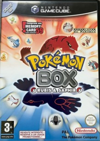 Pokémon Box : Rubis et Saphir est un utilitaire de gestion sorti sur Nintendo GameCube, permettant de stocker jusqu'à 1500 Pokémon dans ses boîtes grâce au câble NGC-GBA.