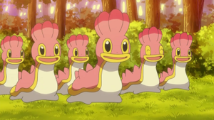Cinq Sancoki Forme Mer Orient apparaissent pour la première fois dans dans l'épisode LH042, sur une plage de Paldea.