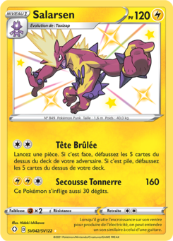 Salarsen (anglais : Toxtricity ; japonais : ストリンダー Strinder[1]) est un Pokémon de type Électrik et Poison de la huitième génération. Il est, avec sa pré-évolution Toxizap, le seul à posséder ce double type.